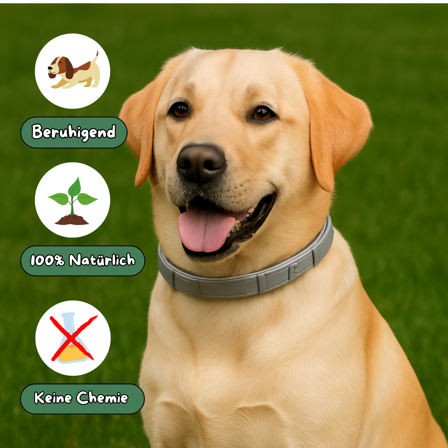 Ob Gewitter, Silvester oder Autofahrt: Das Halsband hilft deinem Vierbeiner, gelassener zu bleiben (und das ohne schadende Stoffe).