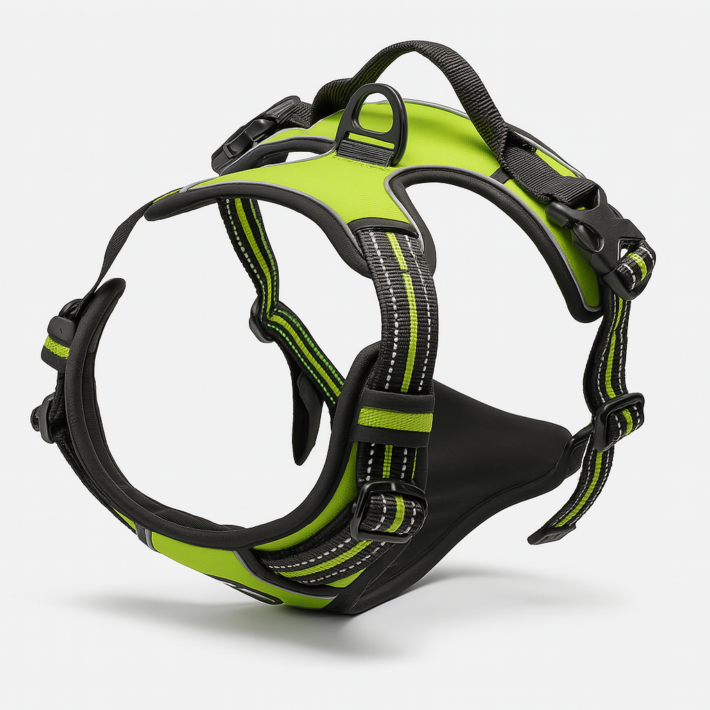 Das Geschirr sitzt fest und verrutscht nicht. Selbst bei aktiven oder ziehfreudigen Hunden. Reflektoren sorgen zusätzlich für Sicherheit bei Dunkelheit.