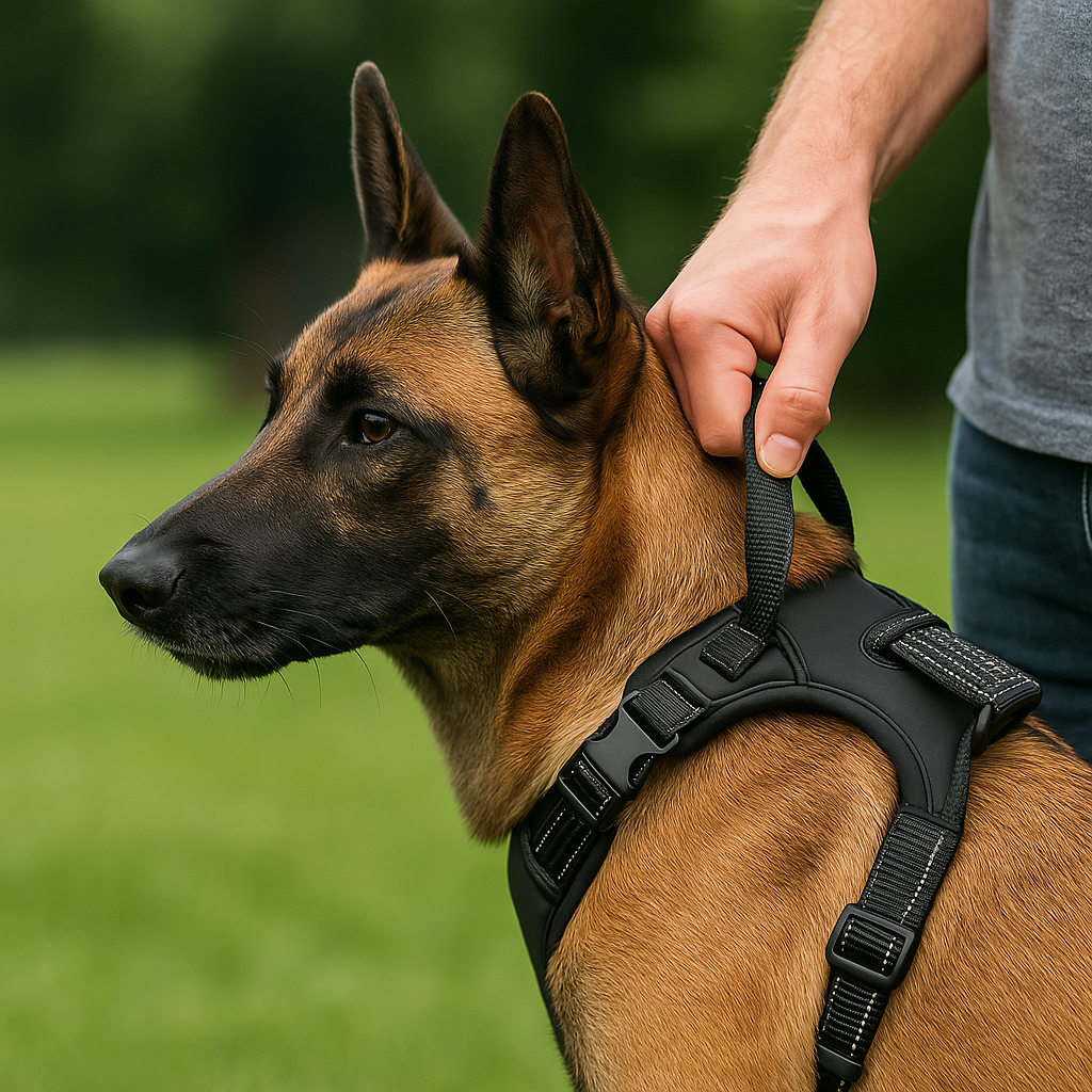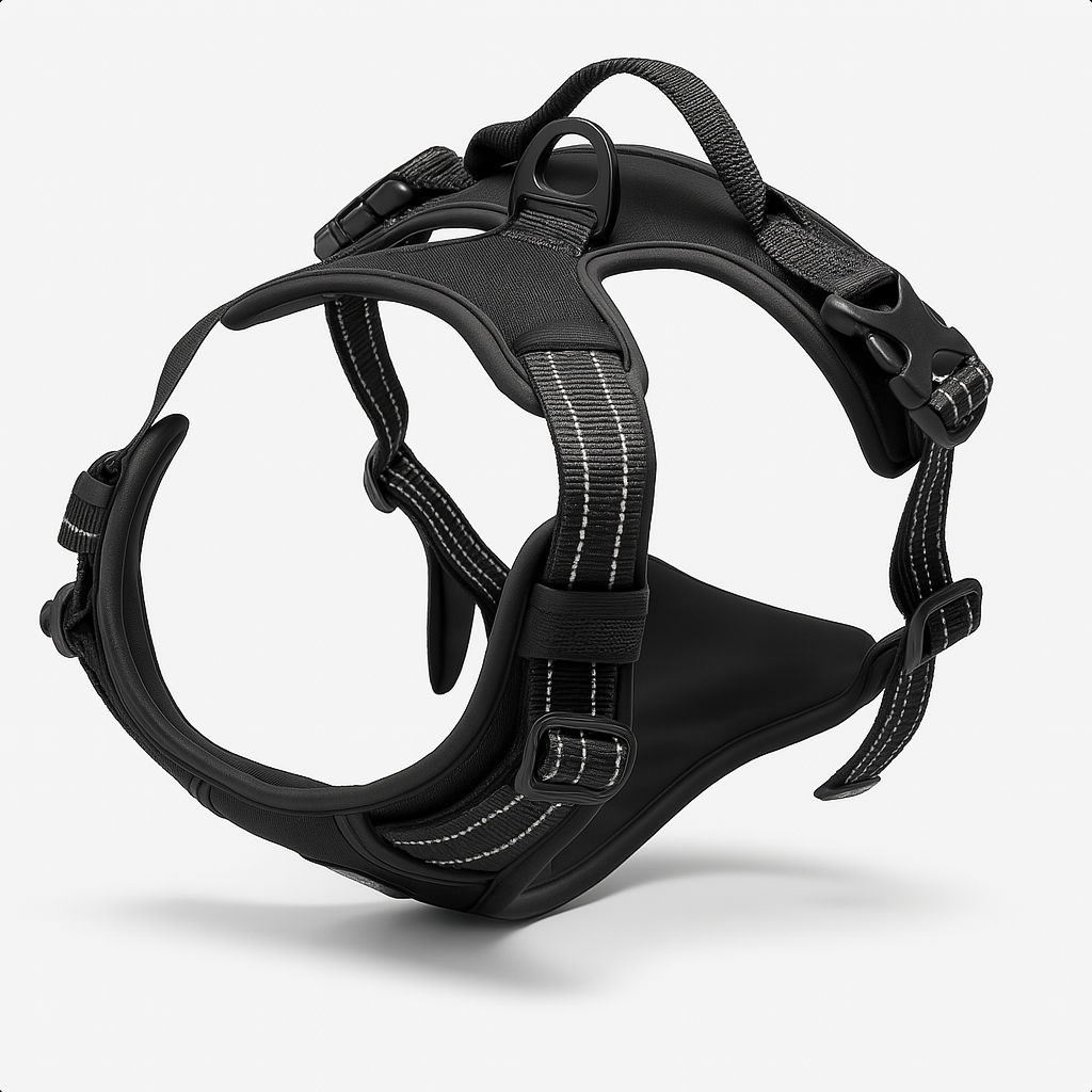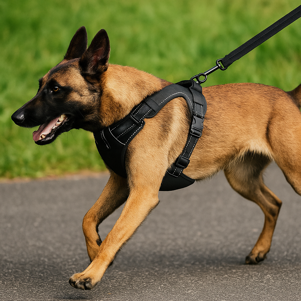 Unser SafetyFirst Hundegeschirr wurde speziell entwickelt, um empfindliche Bereiche wie Hals und Wirbelsäule deines Hundes zu entlasten – besonders bei plötzlichem Ziehen oder unerwarteten Bewegungen.
